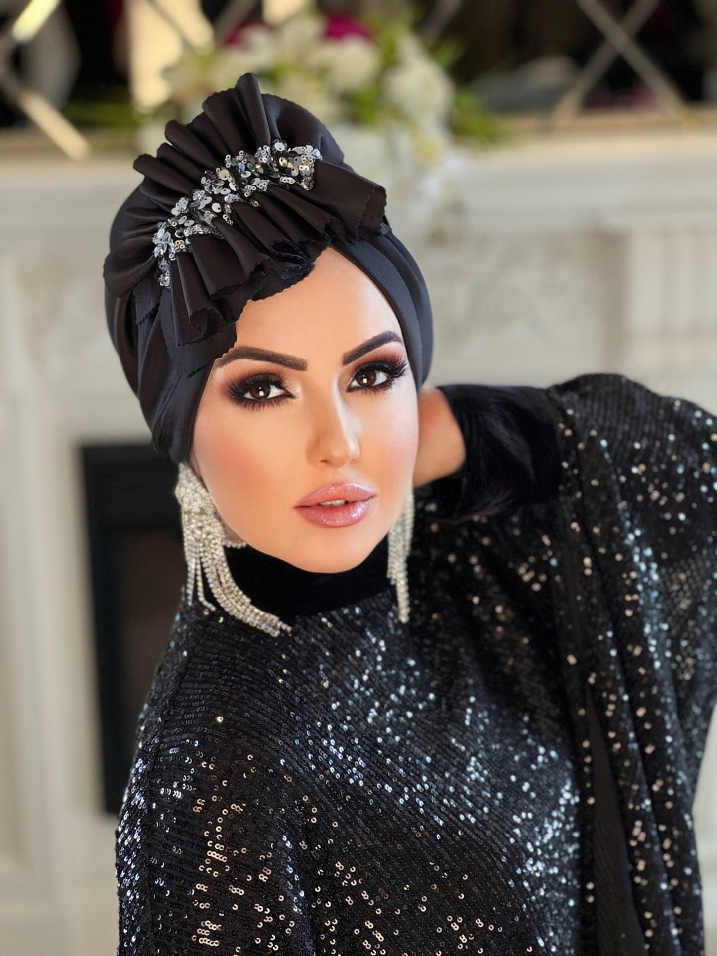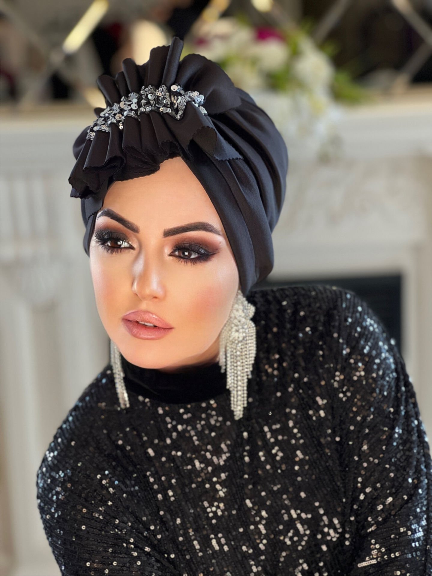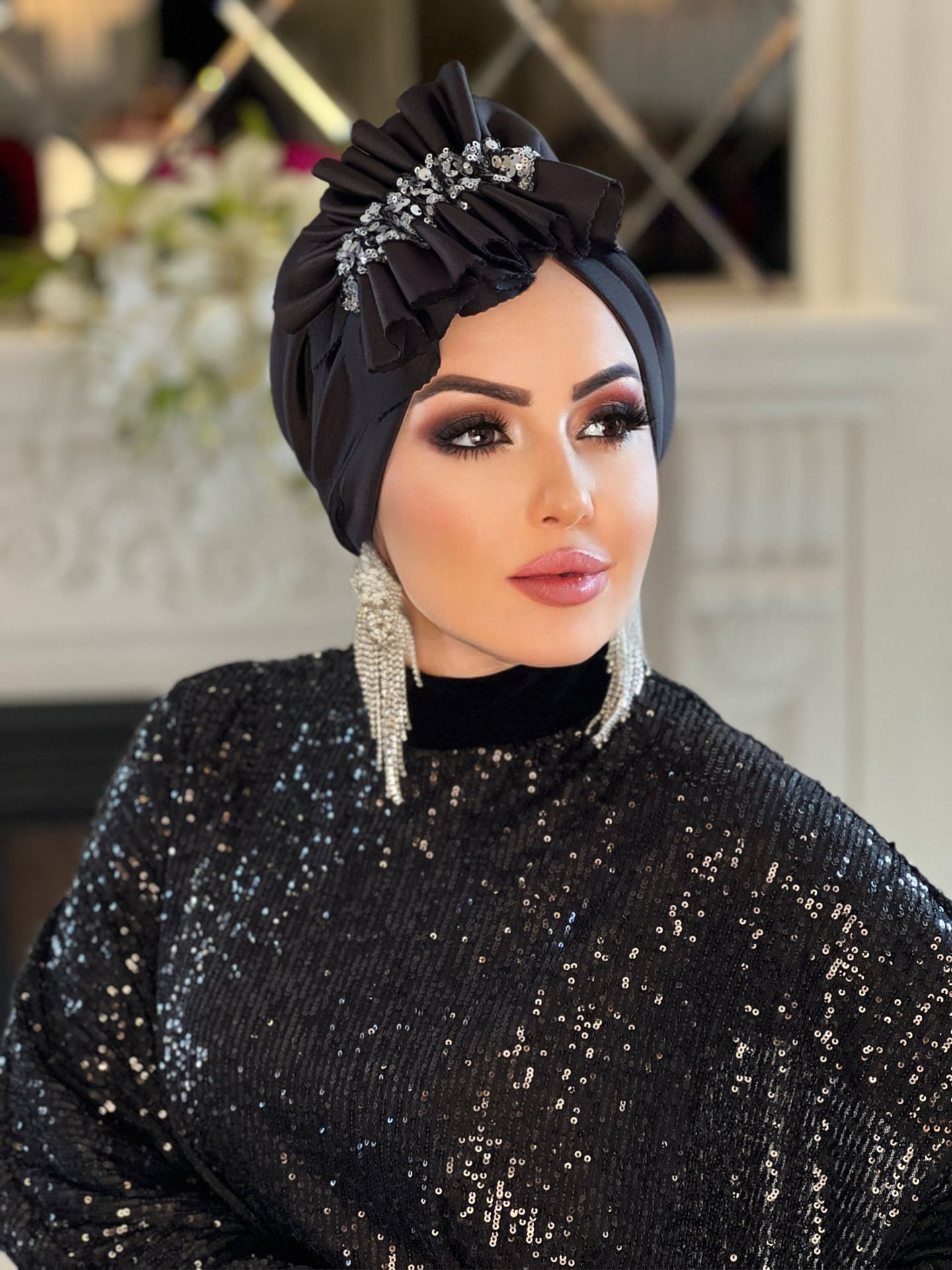 SİYAH GÜMÜŞ PAYETLİ FIRFIRLI BONE