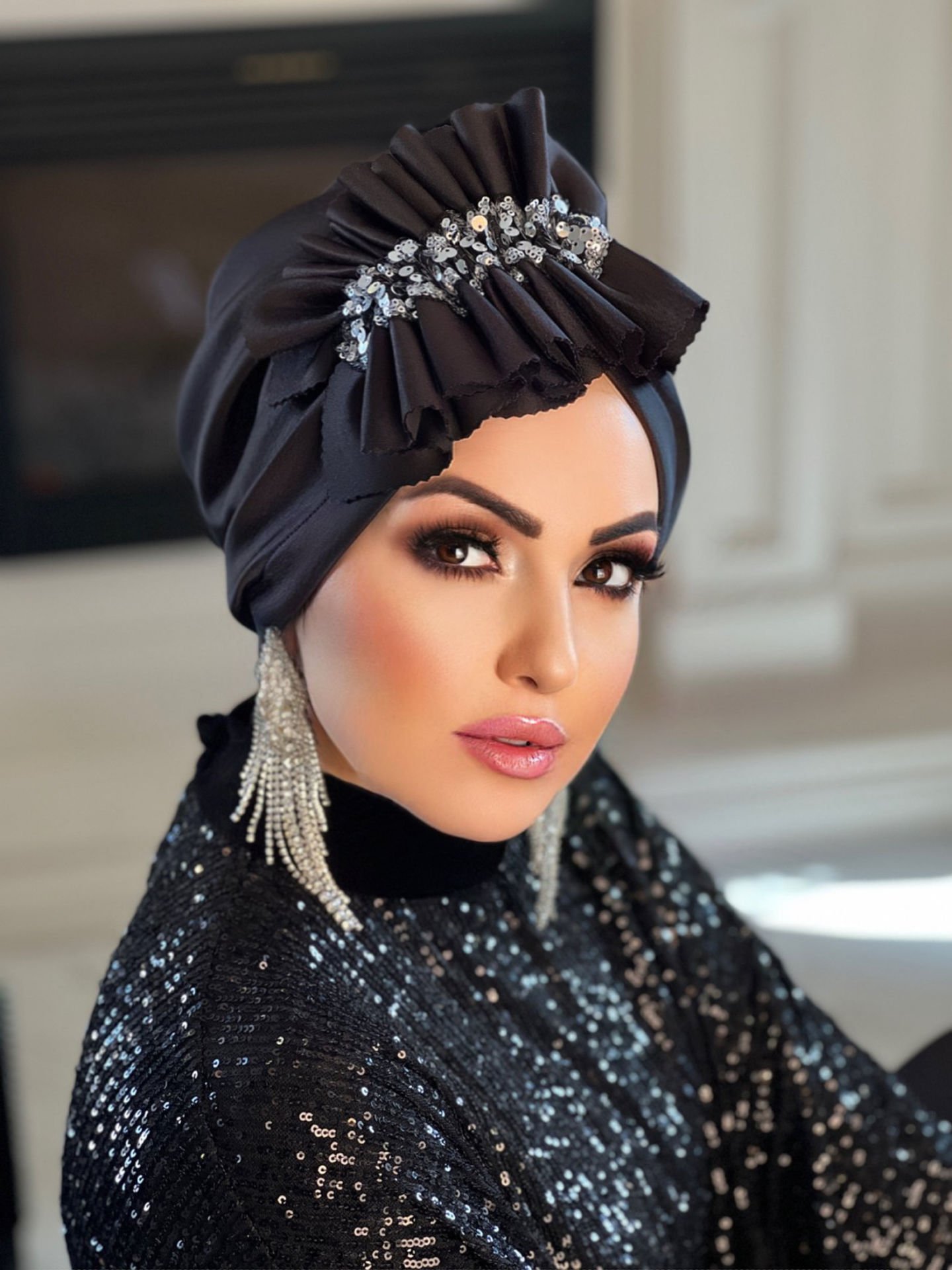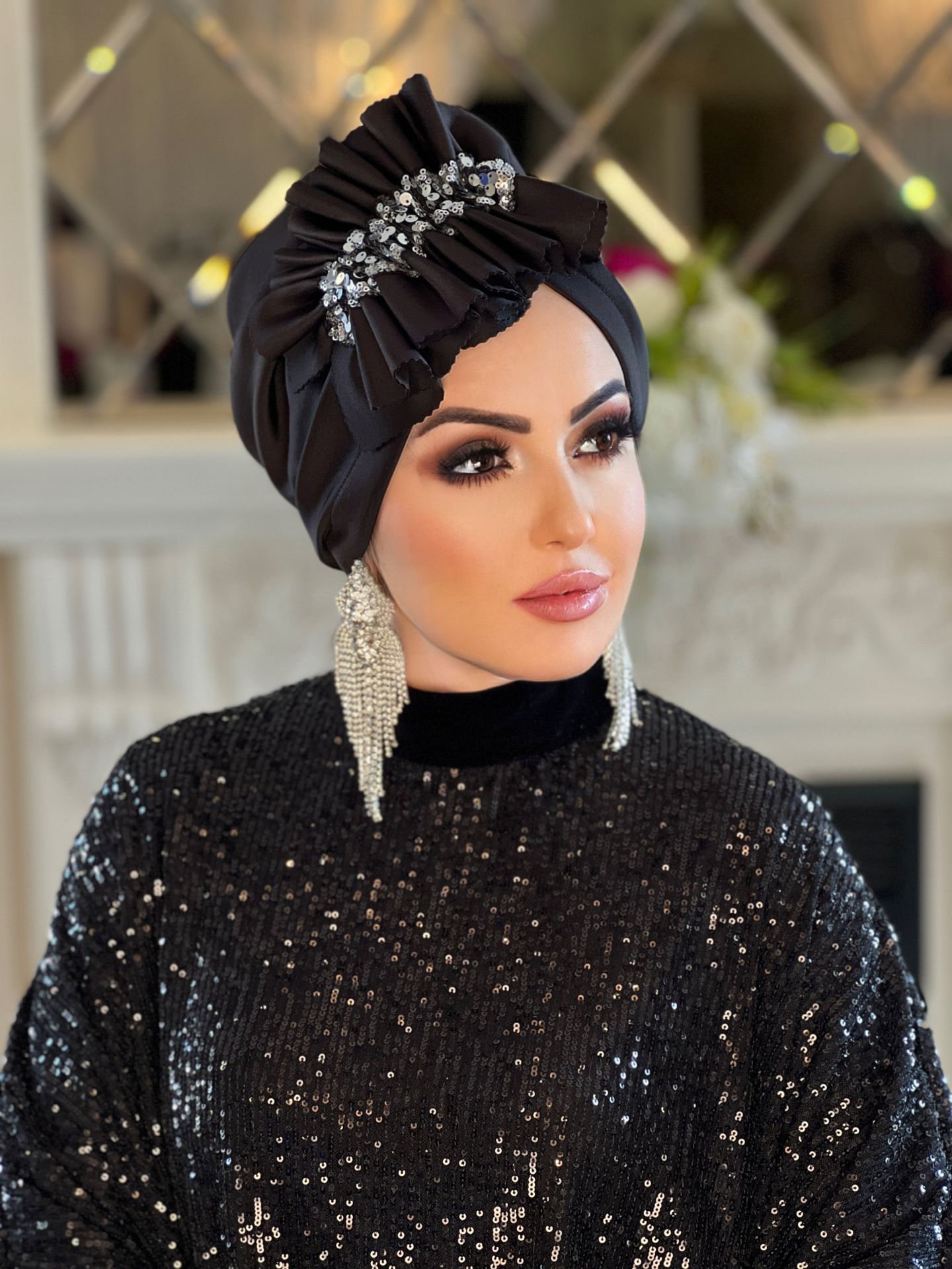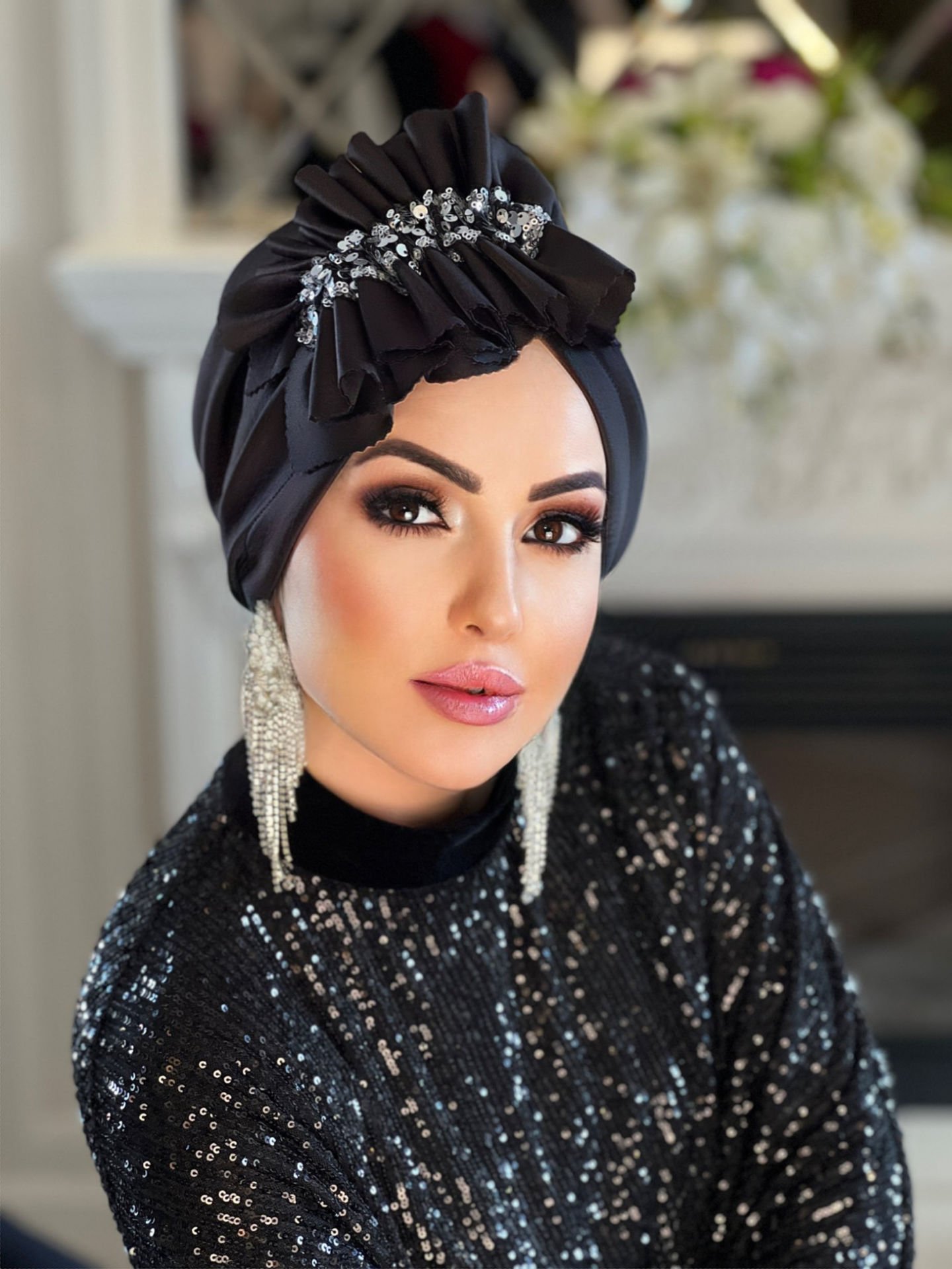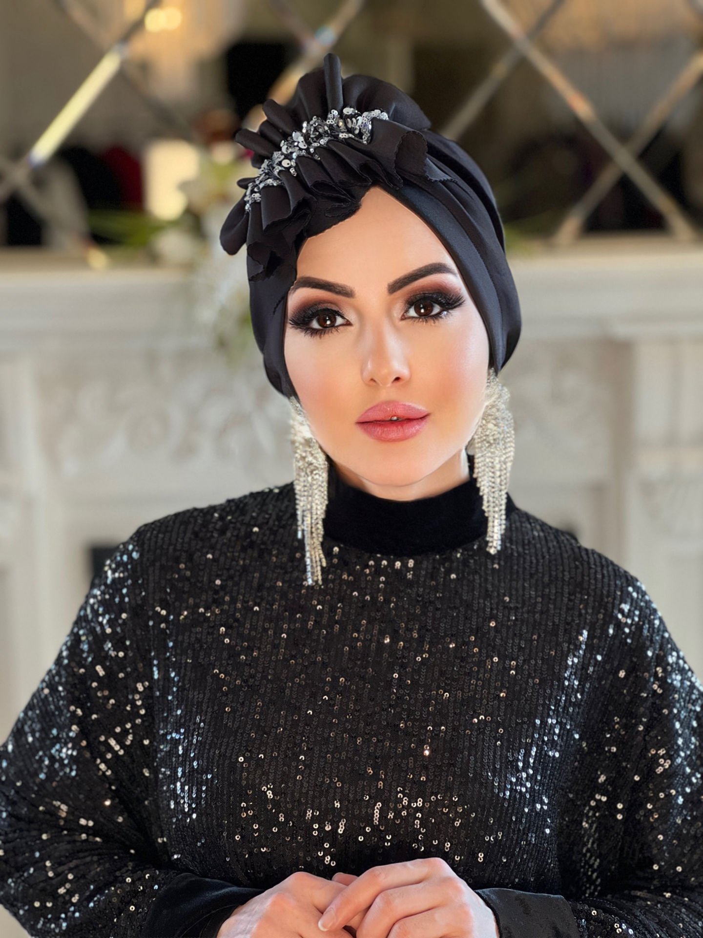 SİYAH GÜMÜŞ PAYETLİ FIRFIRLI BONE