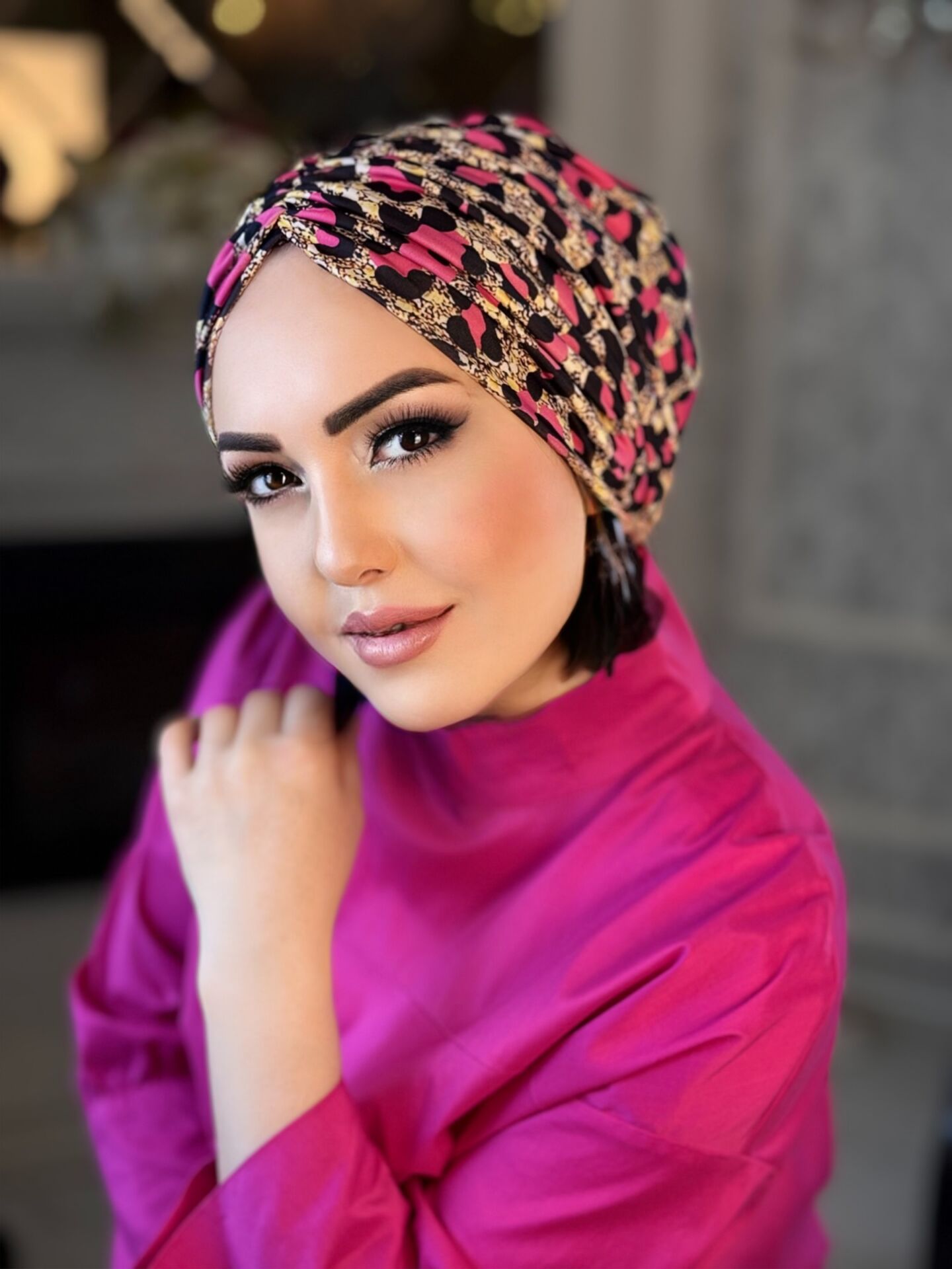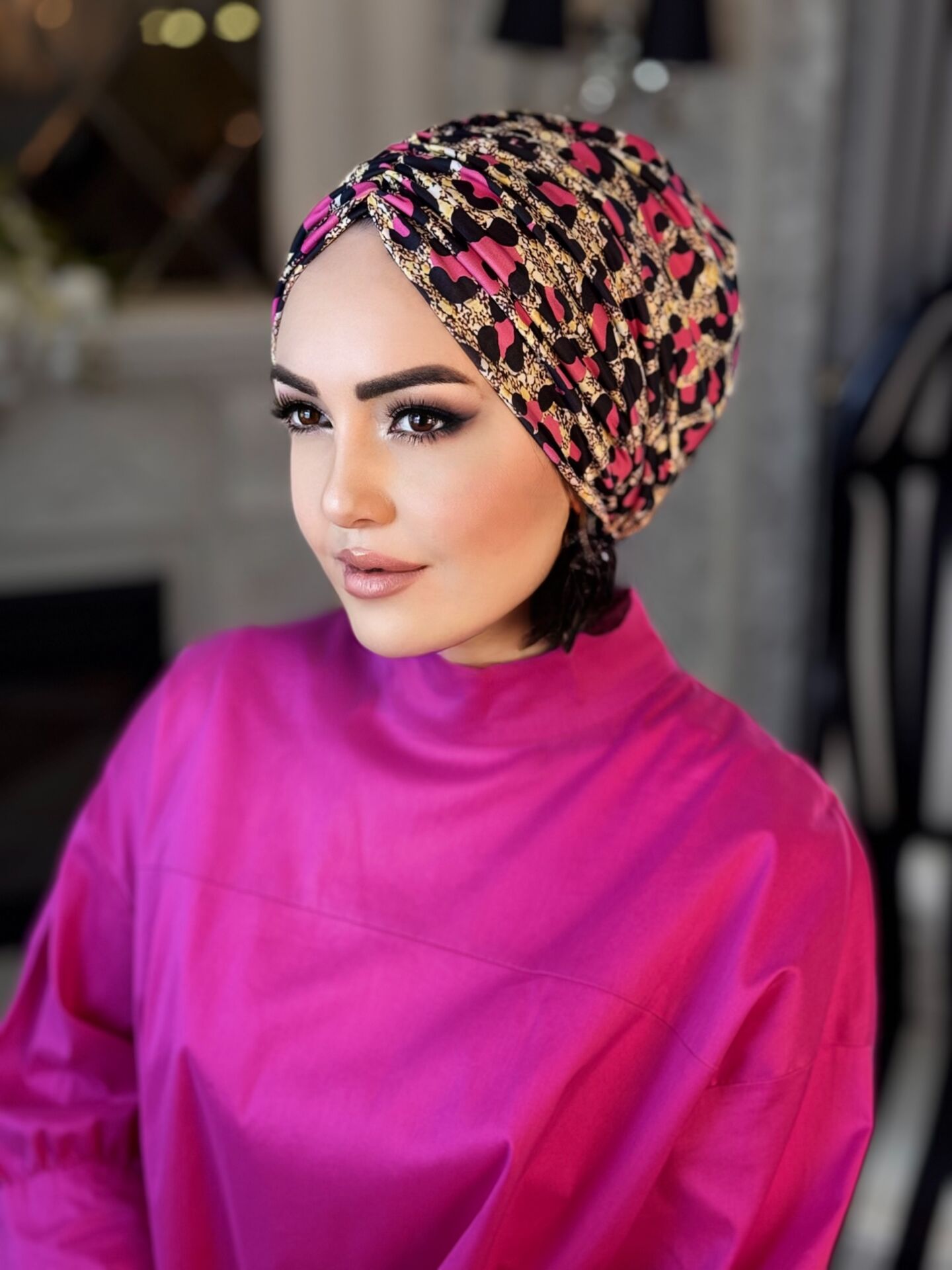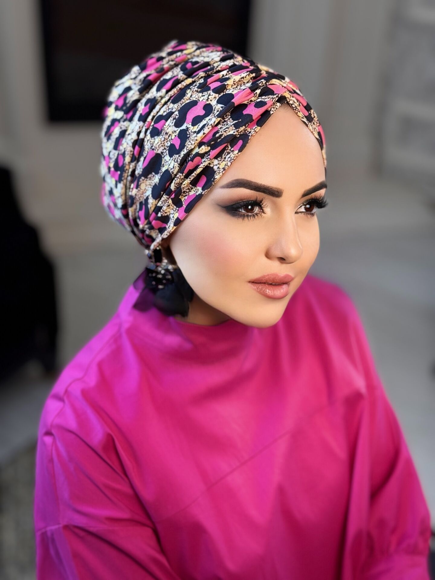 KREM FUŞYA LEOPAR DESENLİ DÖKÜMLÜ BONE