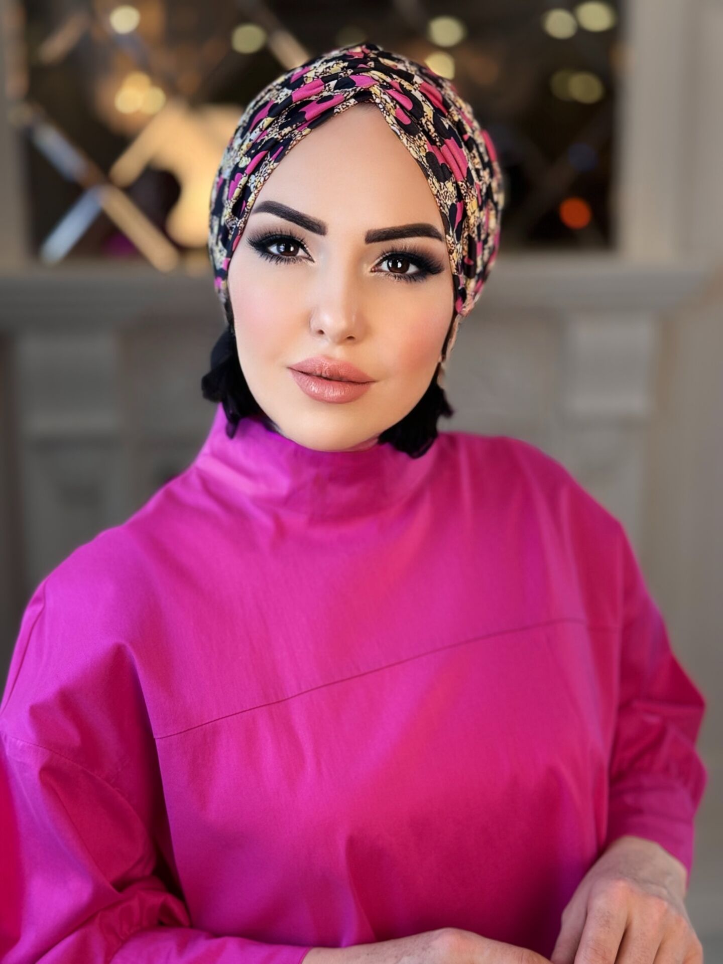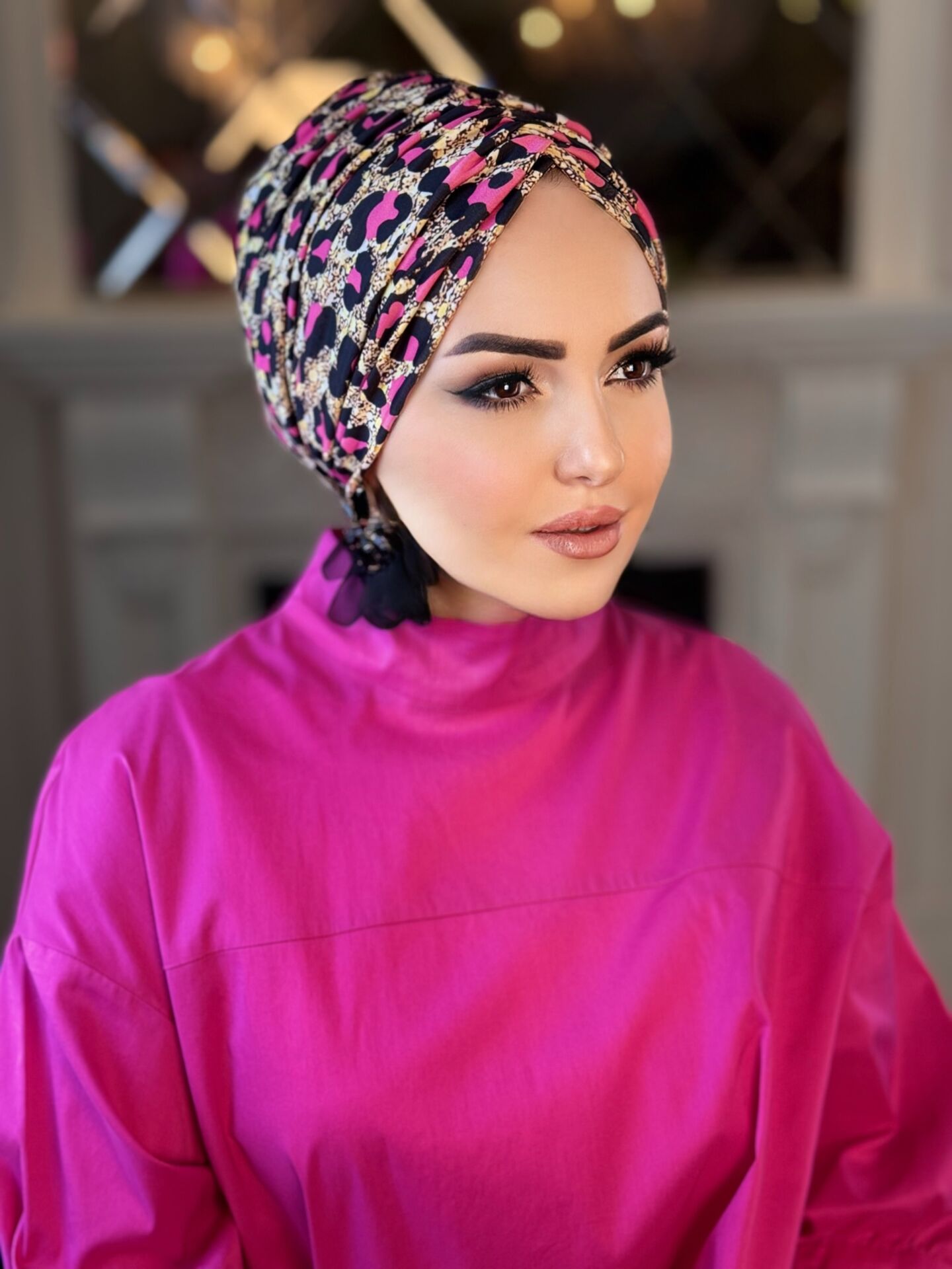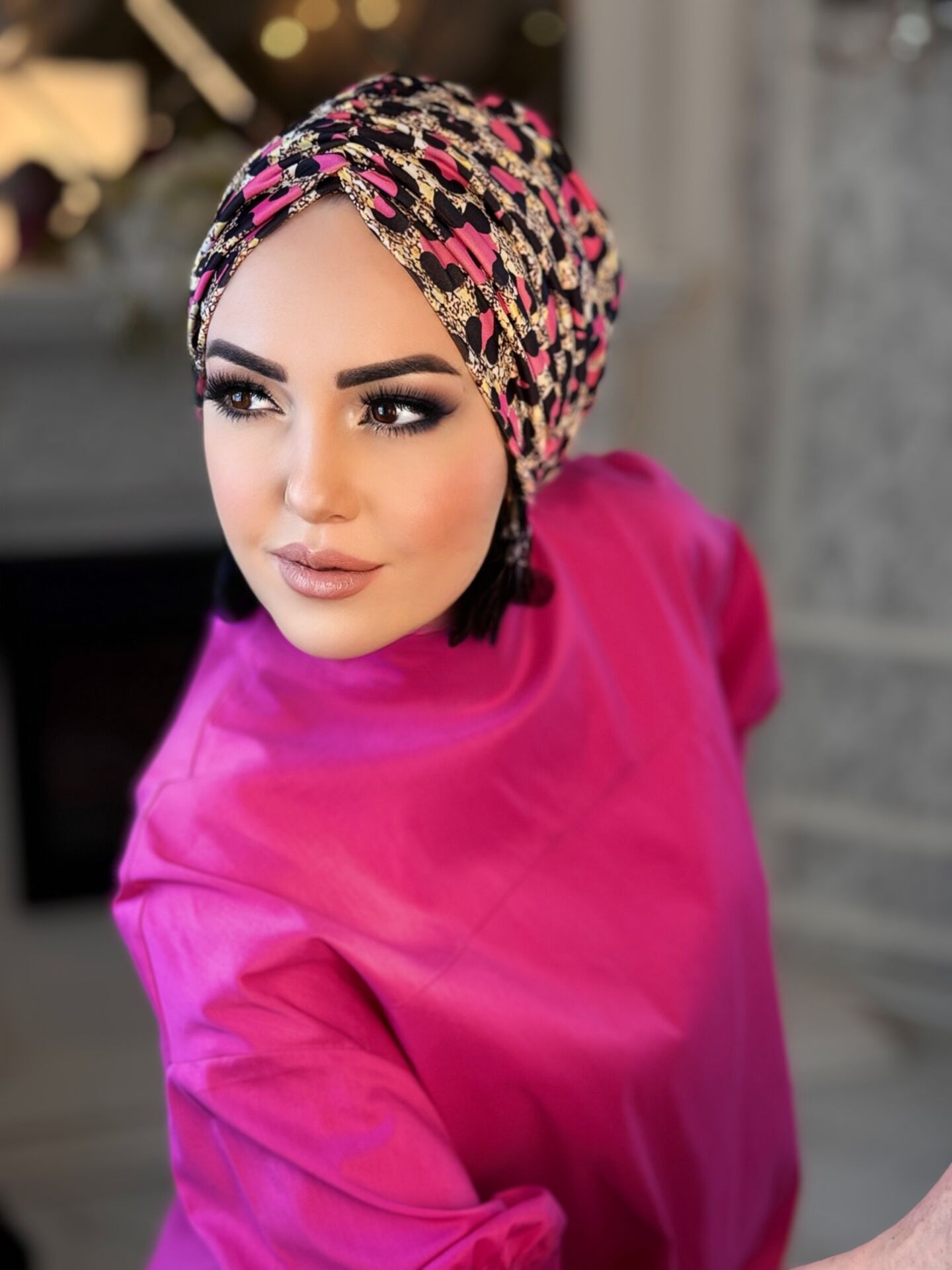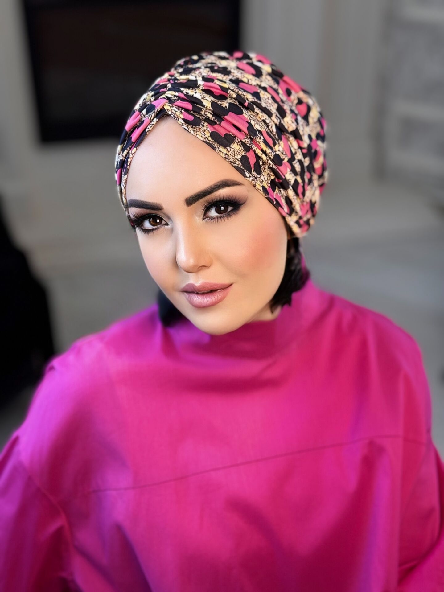 KREM FUŞYA LEOPAR DESENLİ DÖKÜMLÜ BONE