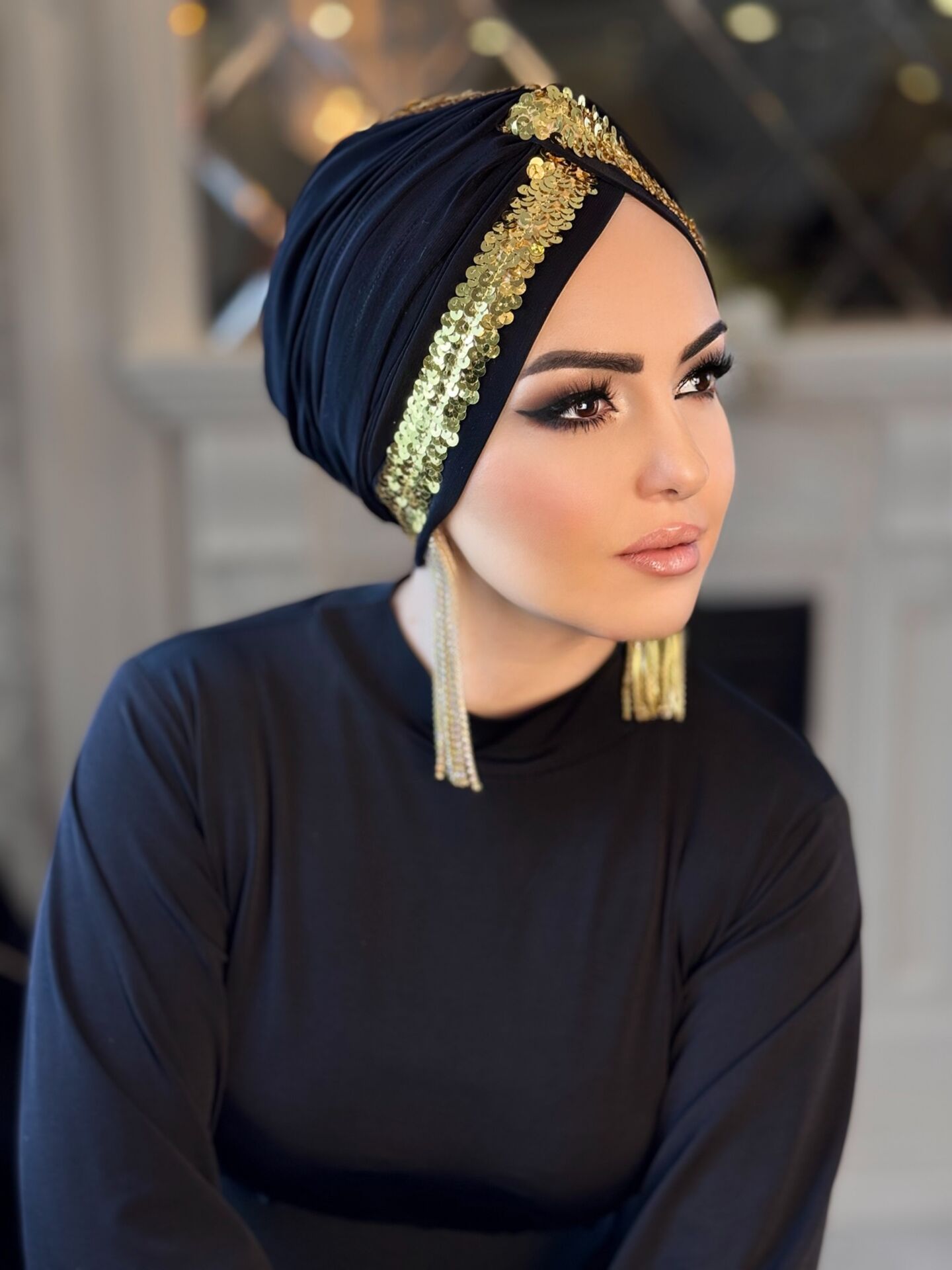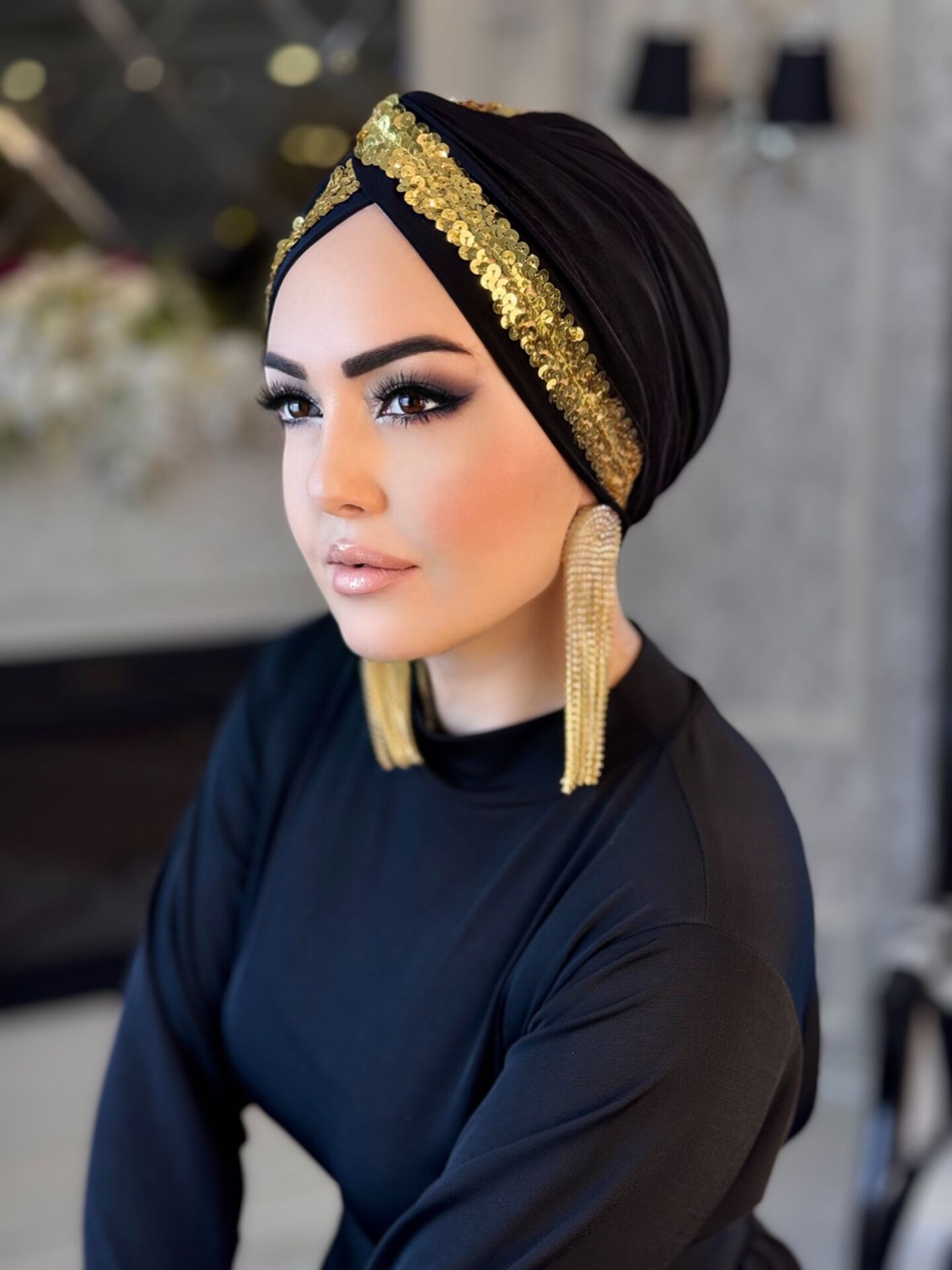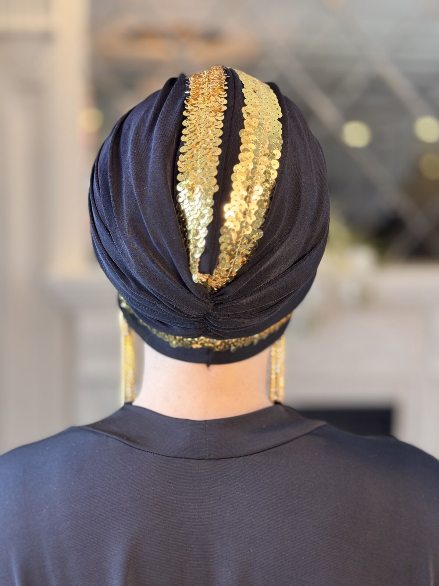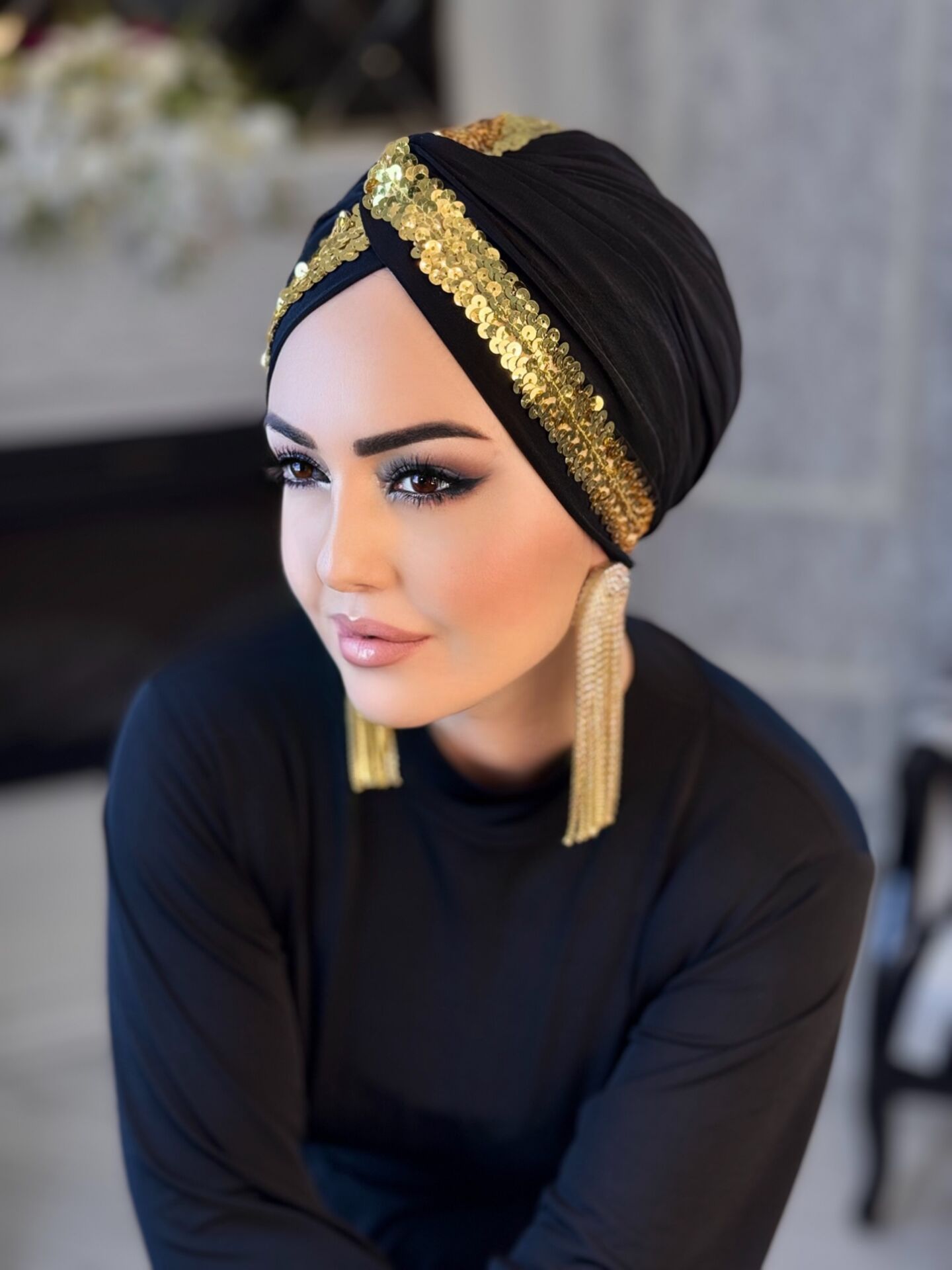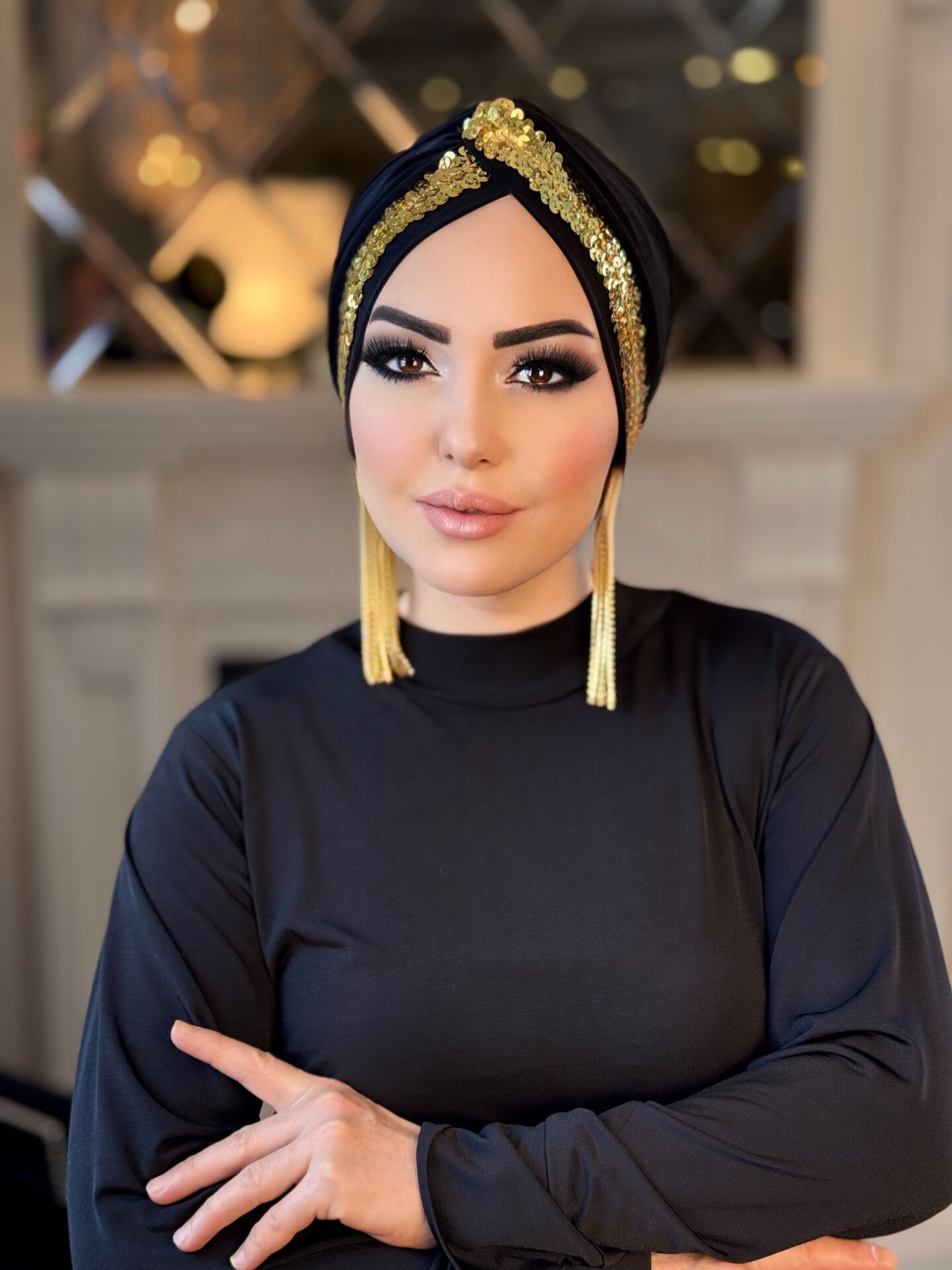 SİYAH GOLD PAYET ŞERİTLİ DÜĞÜM BONE