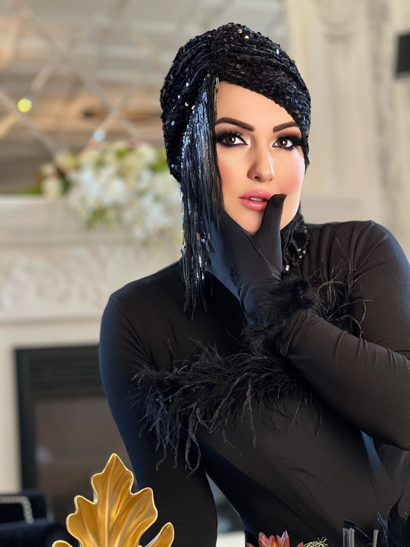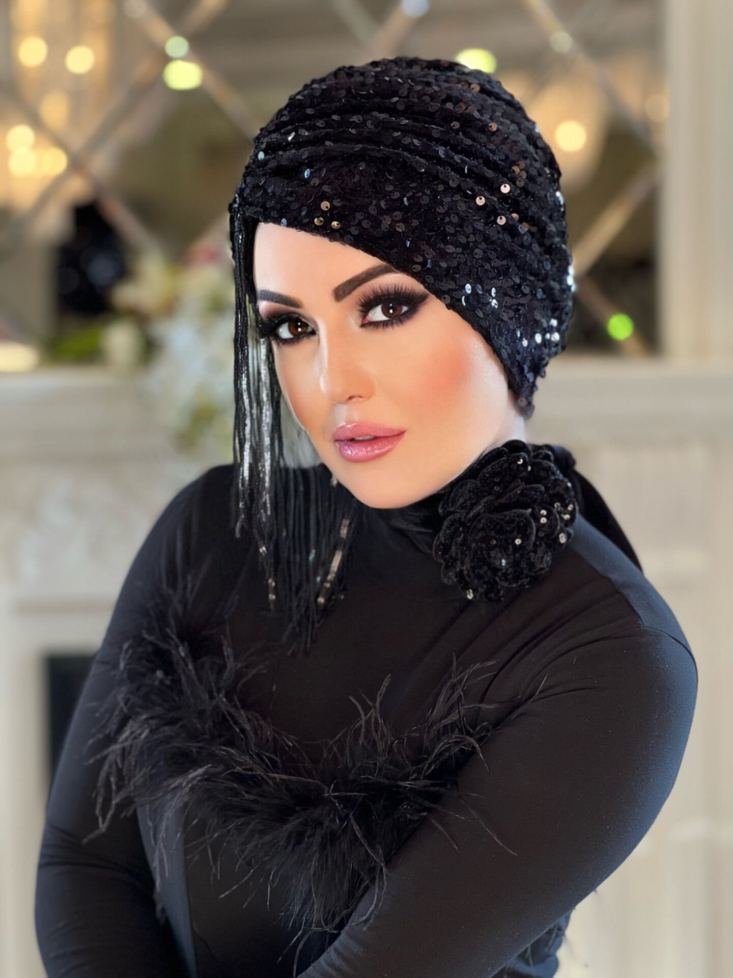 KADİFE PAYETLİ PÜSKÜLLÜ BONE