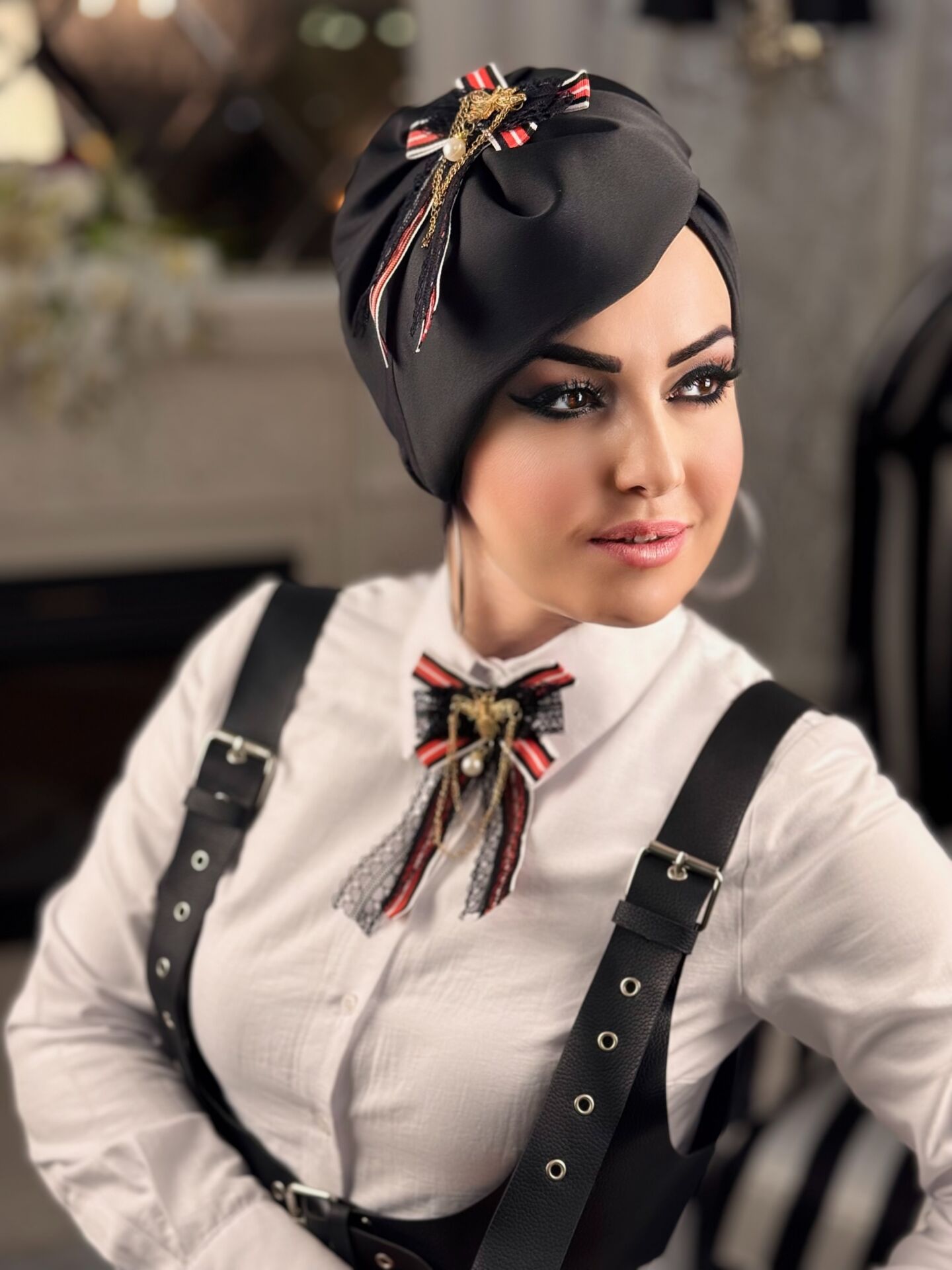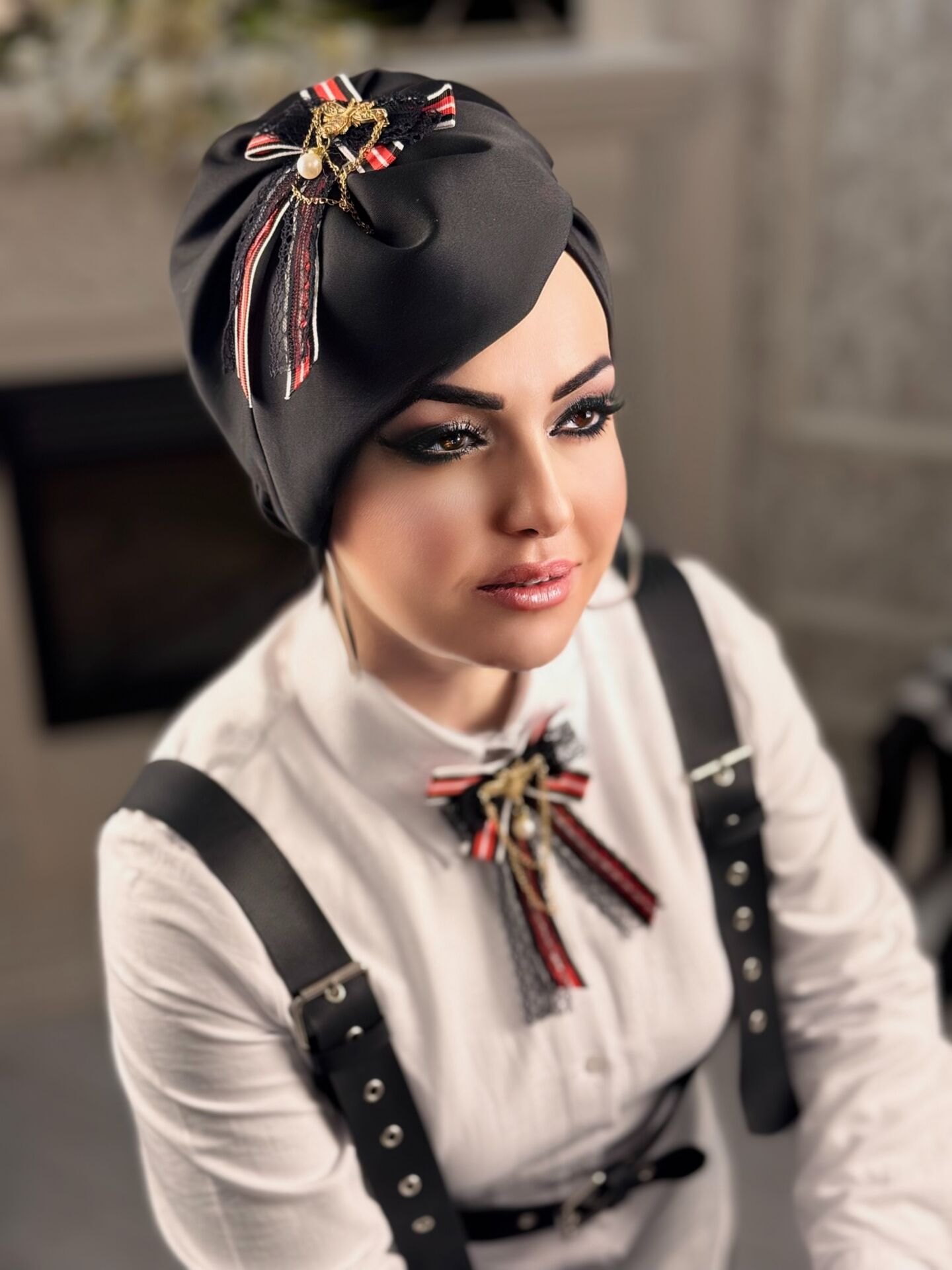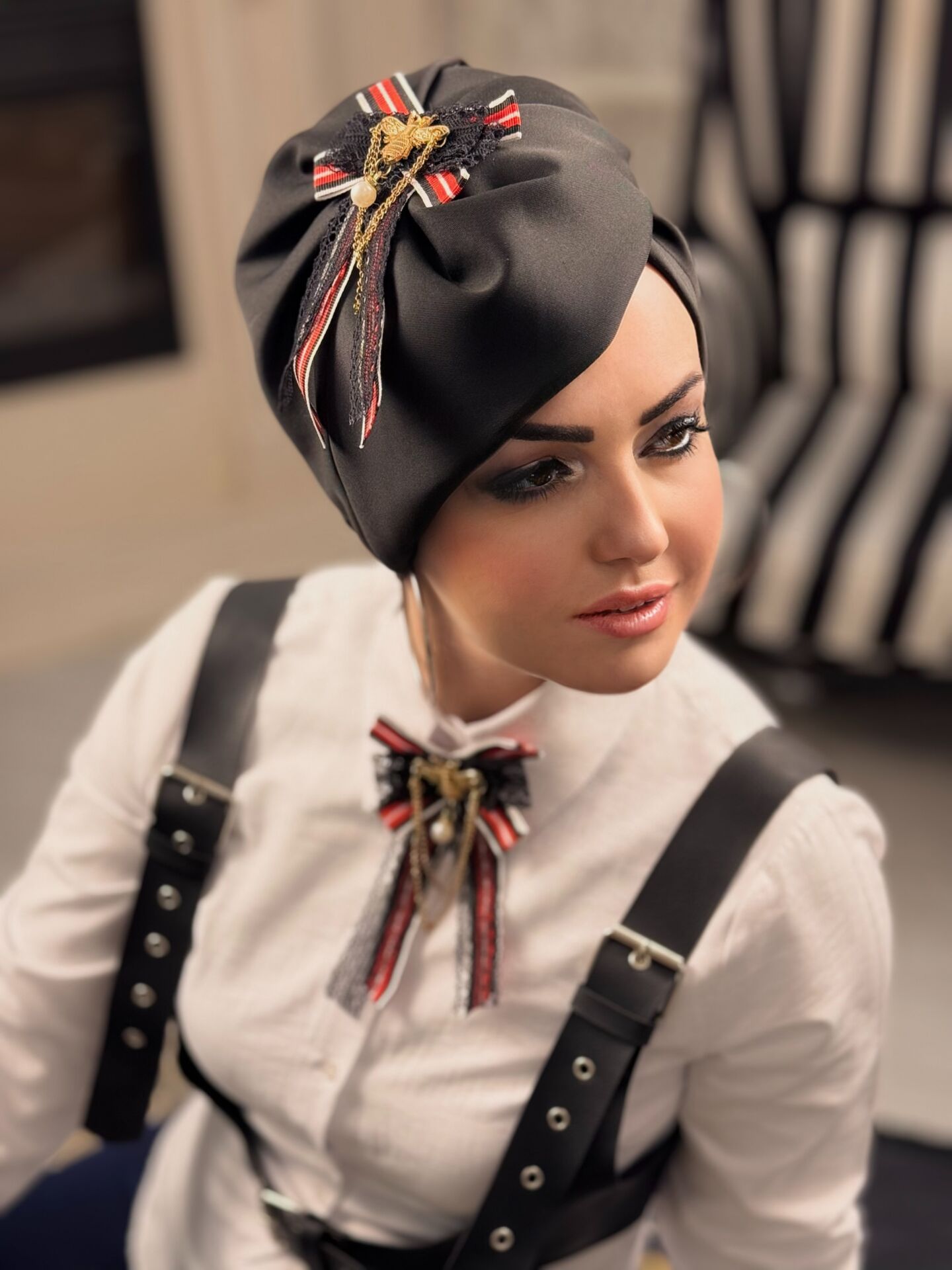 SİYAH KURDALE AKSESUARLI ŞAPKA MADAM BONE