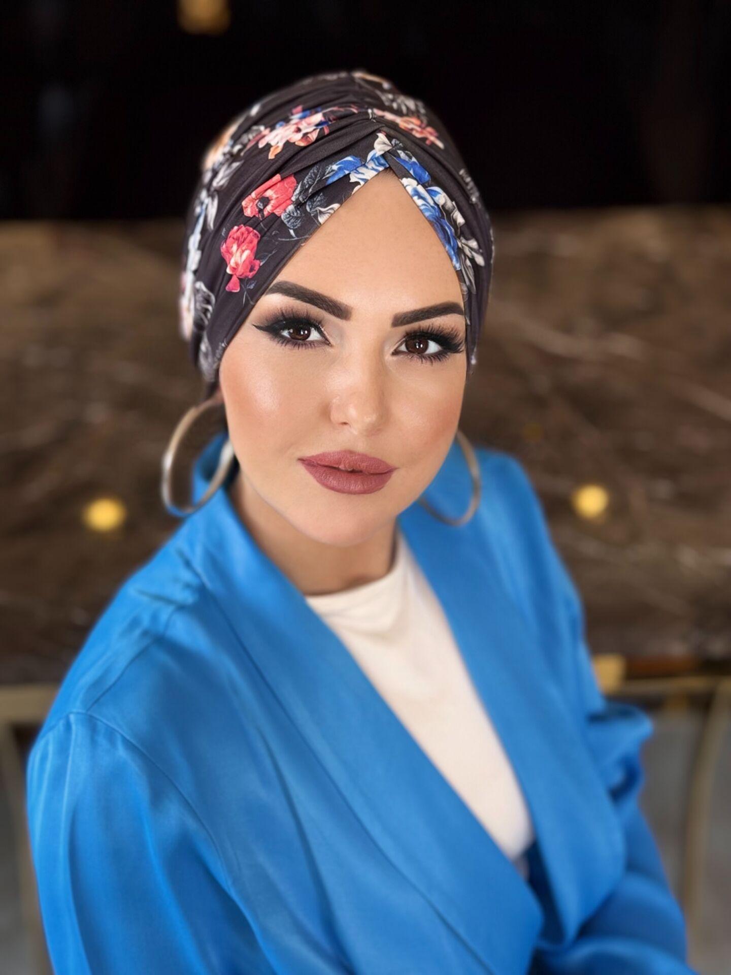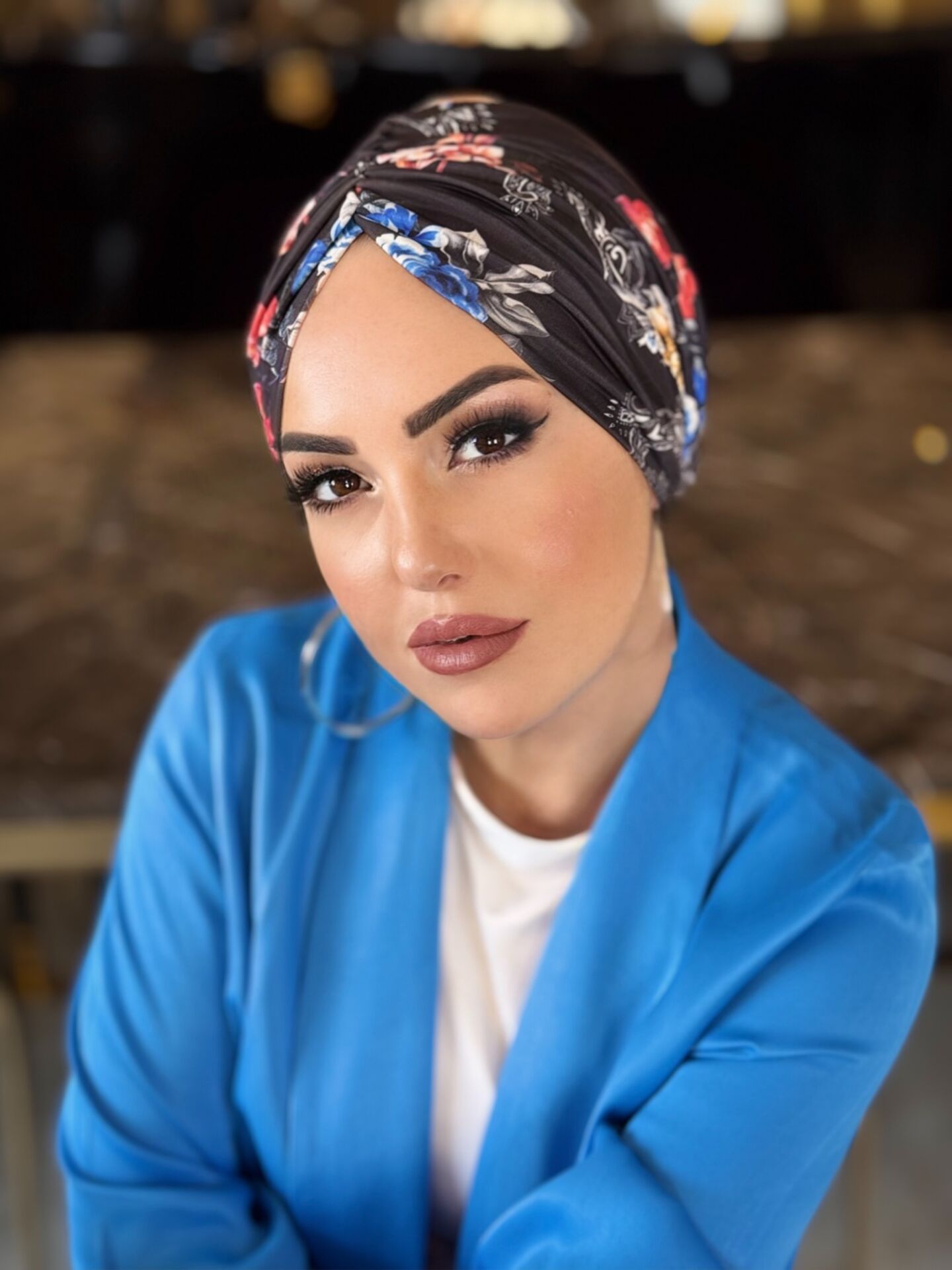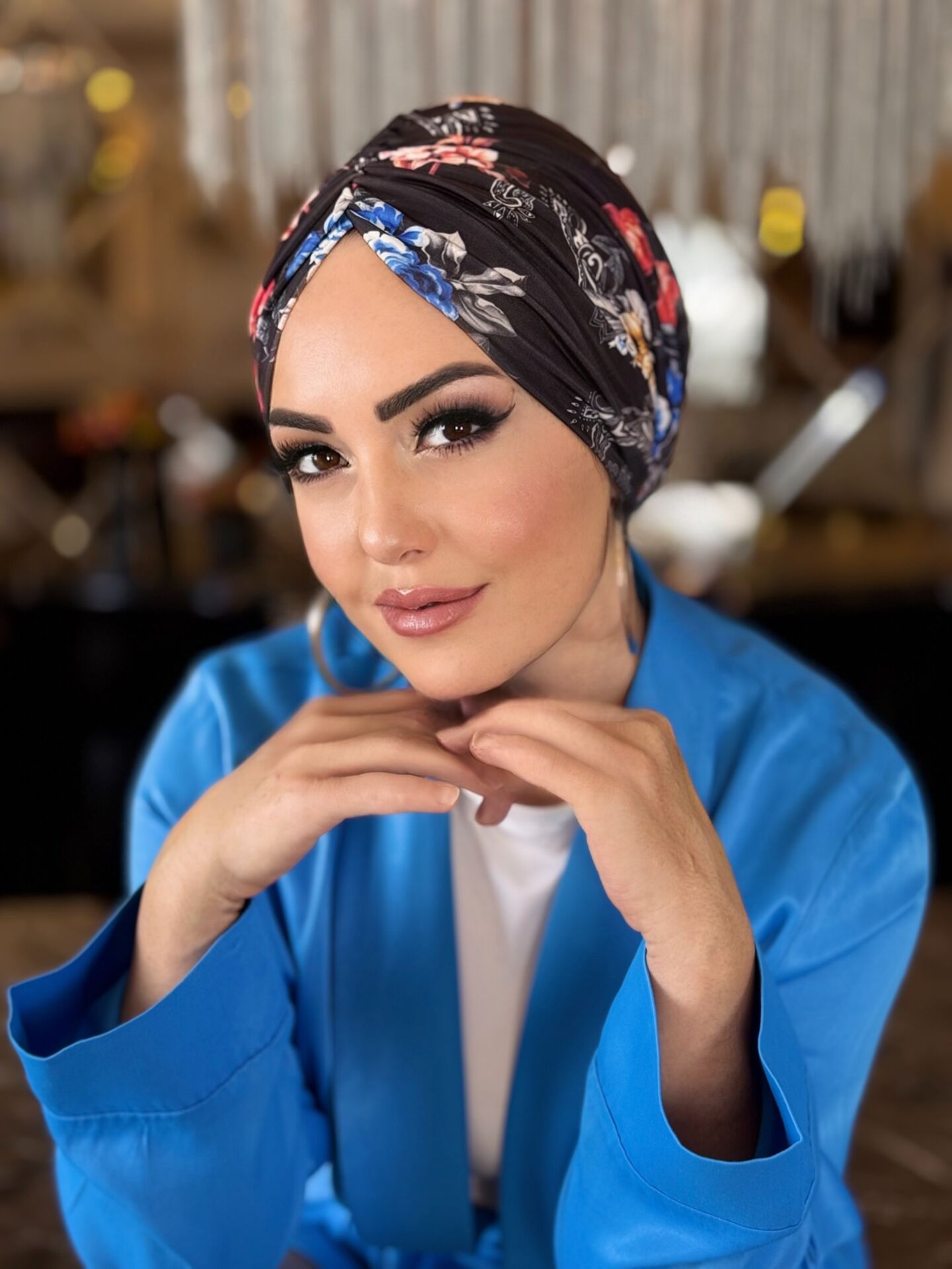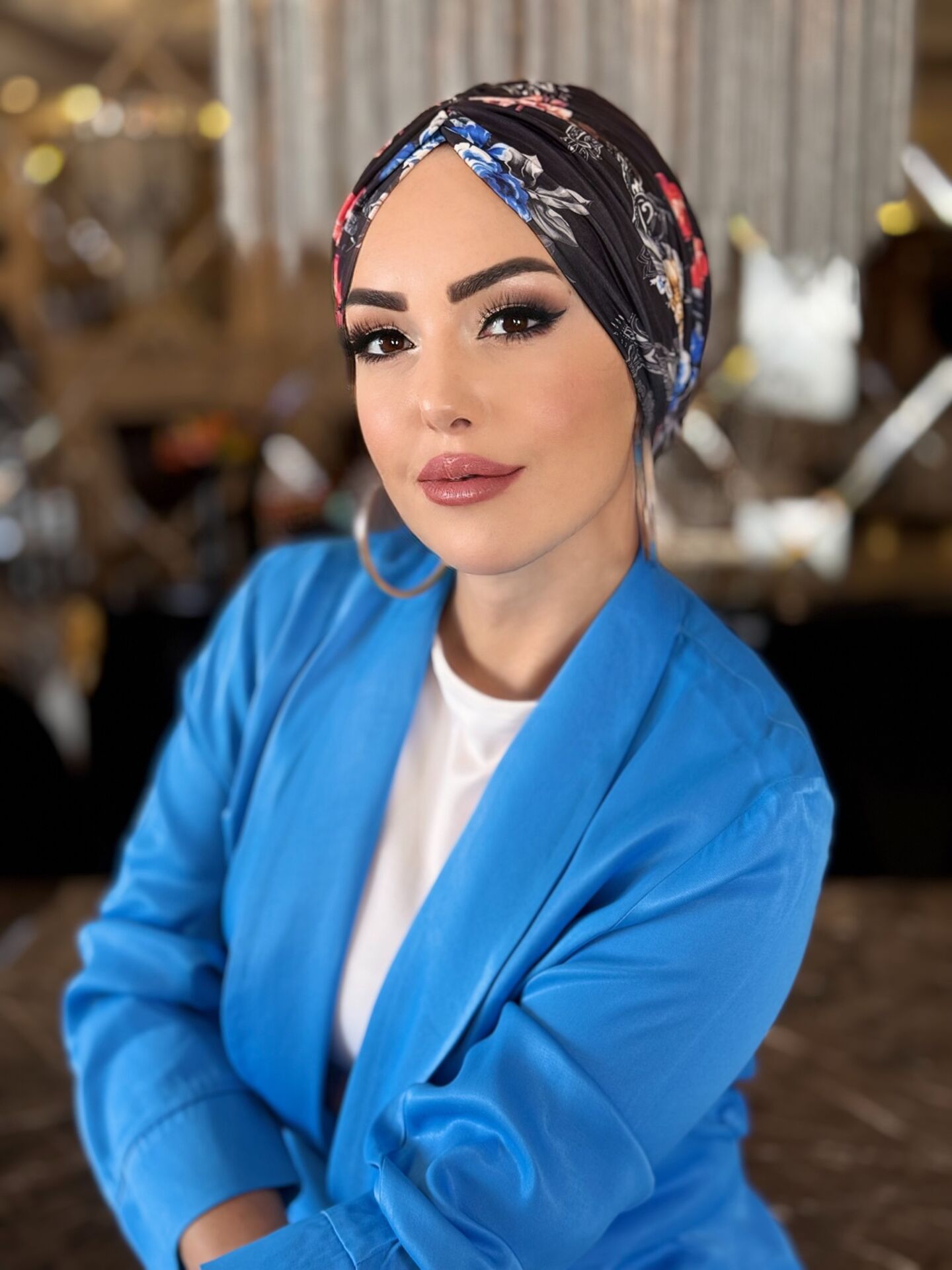 SİYAH-MAVİ DESENLİ DÖKÜMLÜ BONE