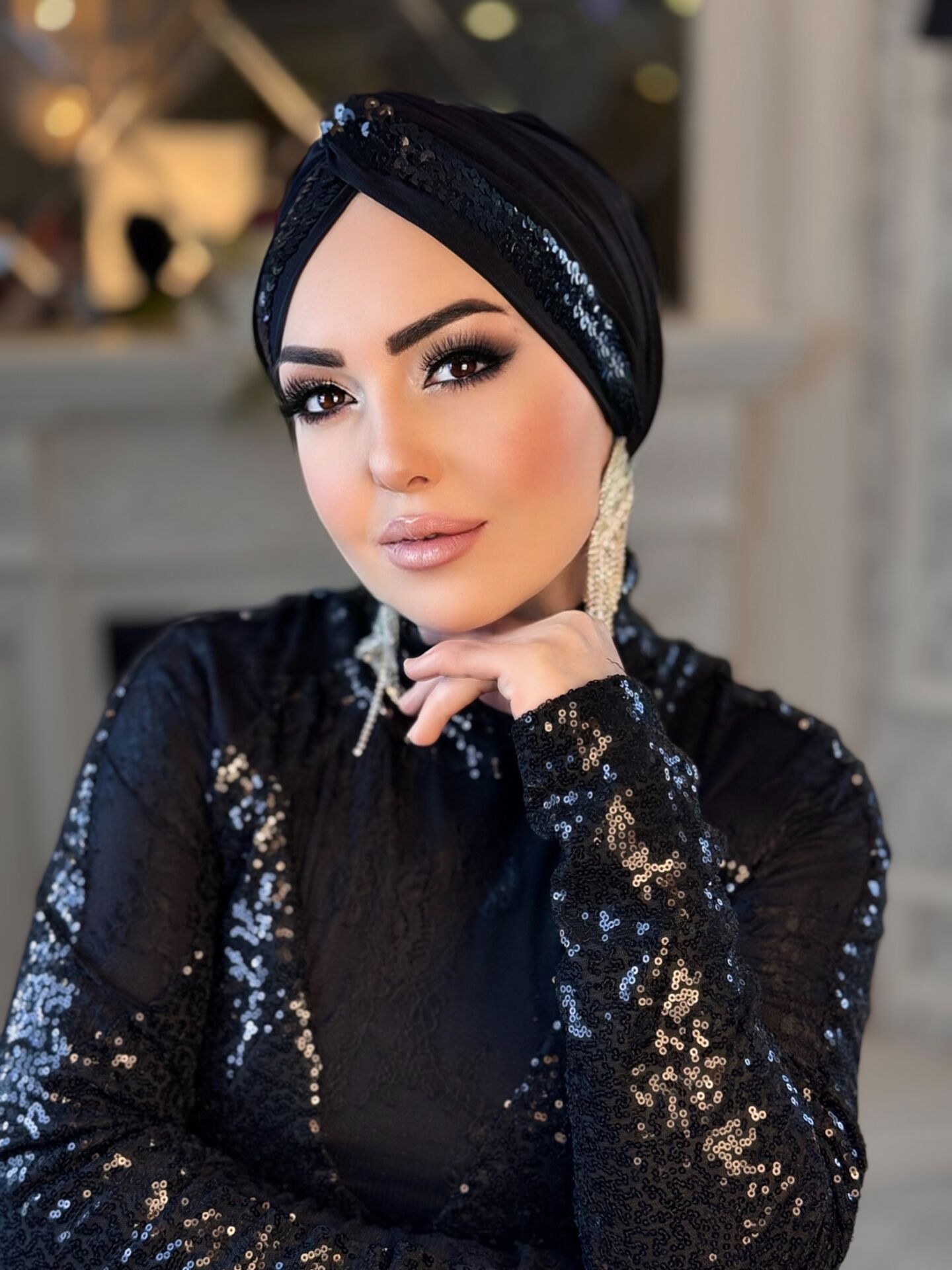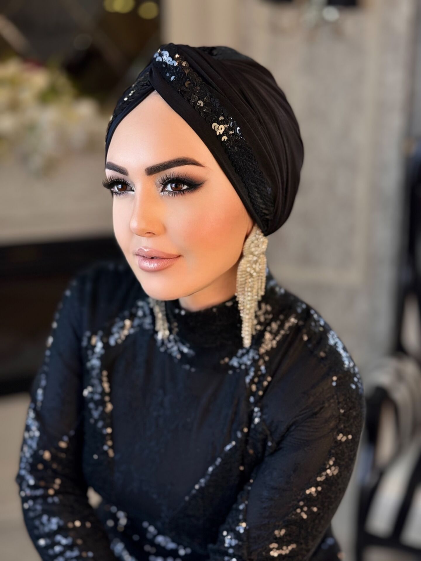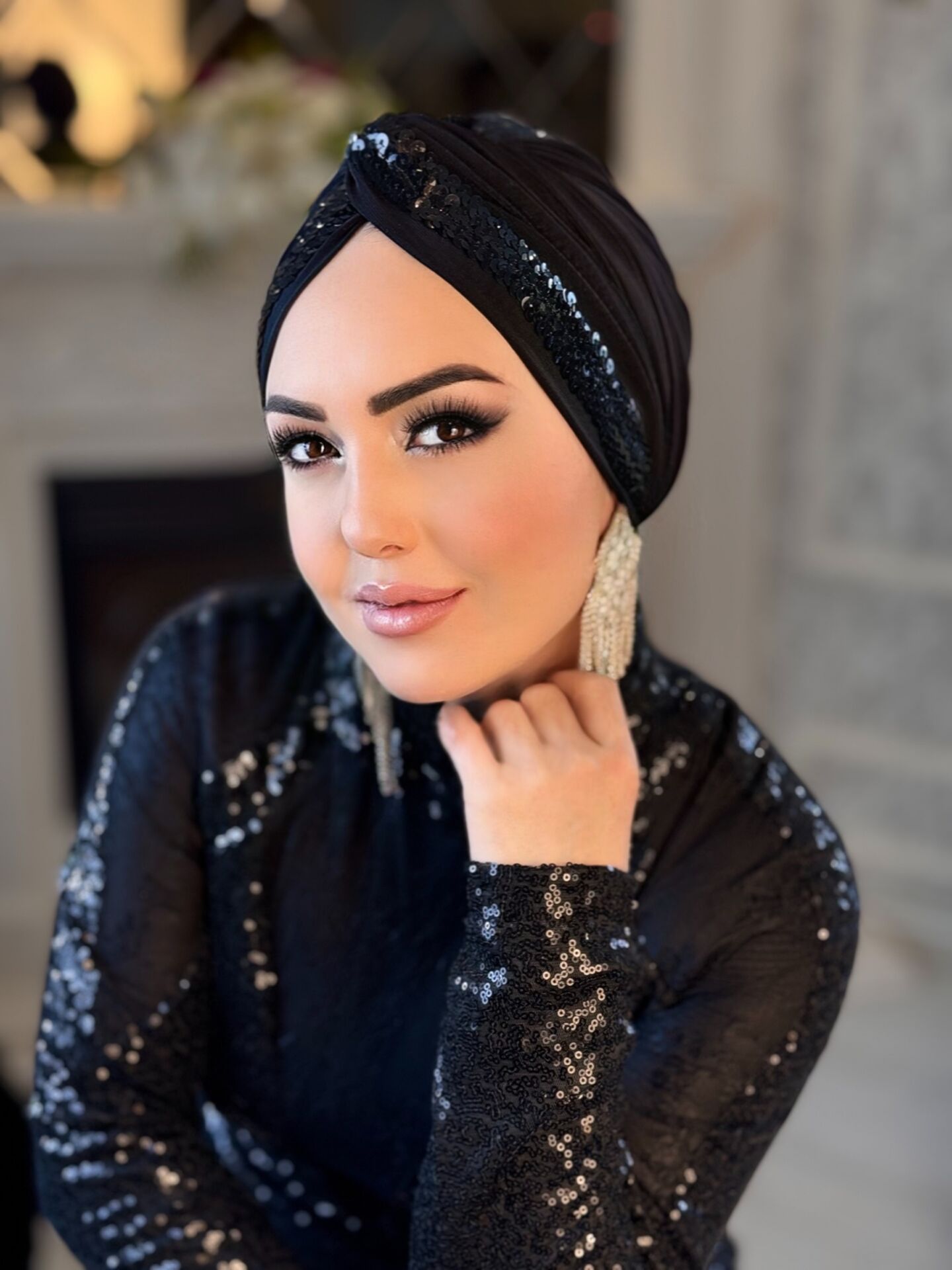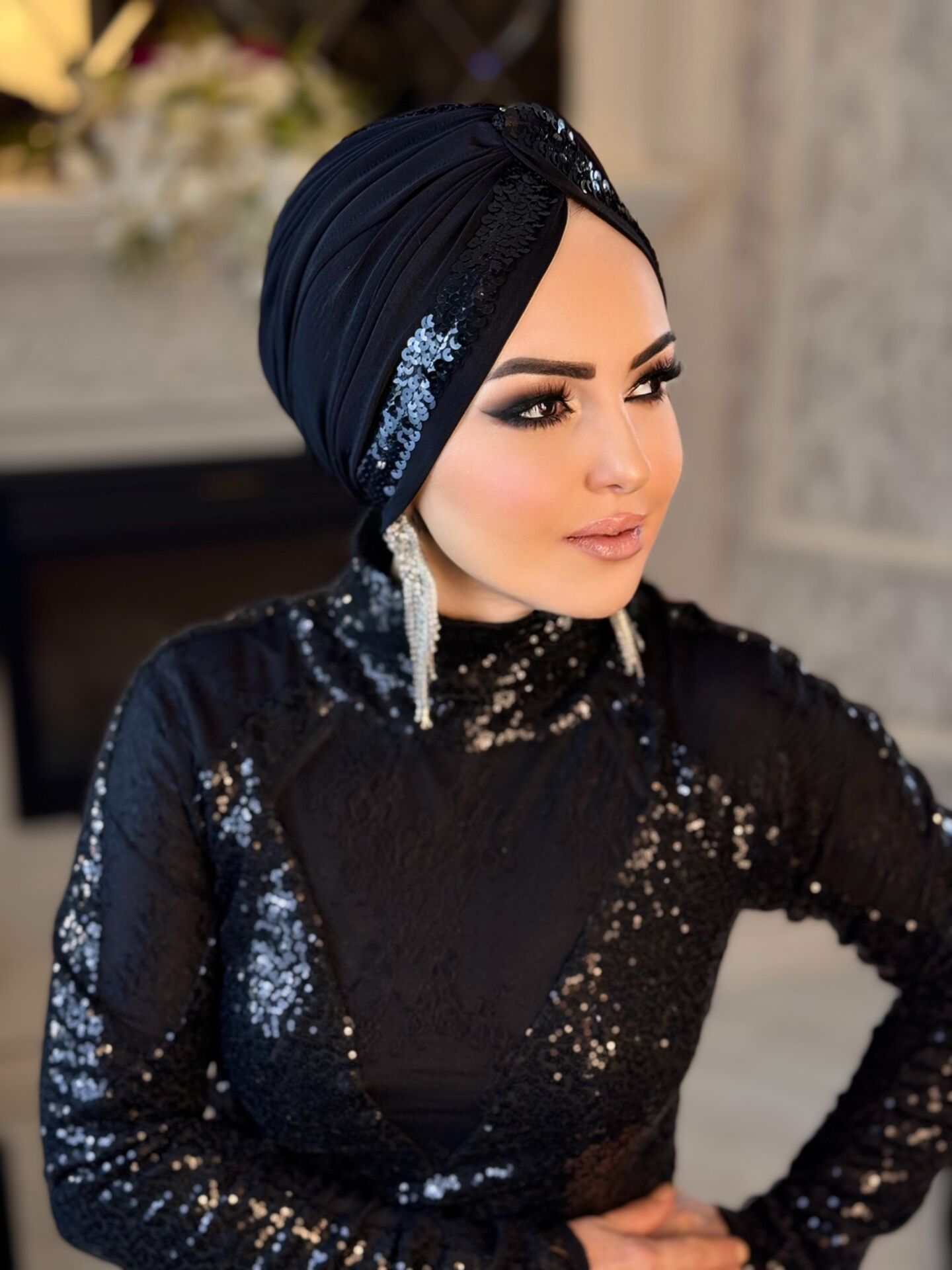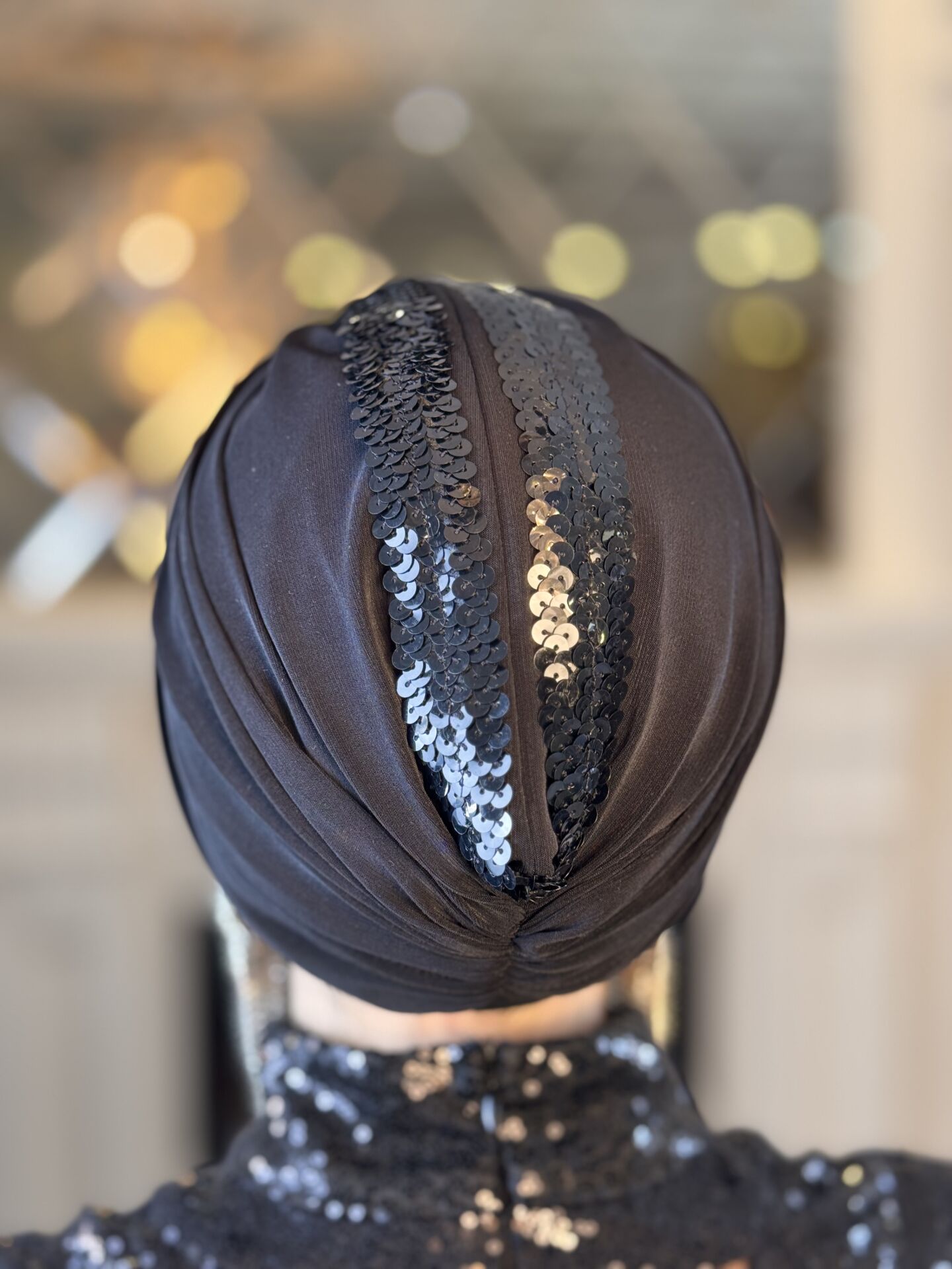 SİYAH SİYAH PAYET ŞERİTLİ DÜĞÜM BONE